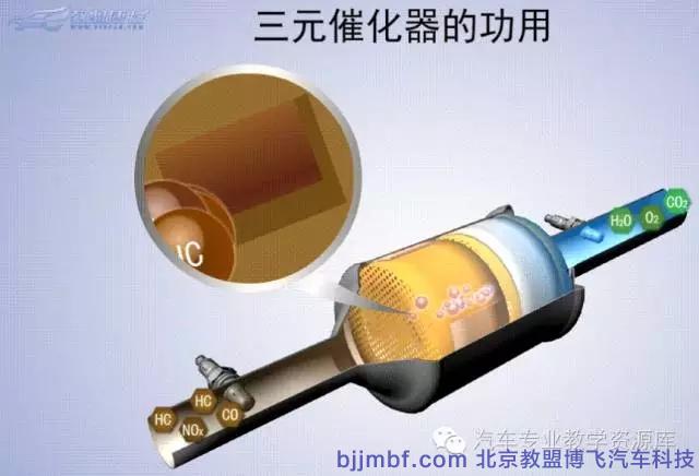 汽車尾氣中的主要有害氣體有一氧化碳(CO)、氮氧化合物(NO)、碳氫化合物(HC)。三元催化就是利用一些化學(xué)劑,與尾氣中的有害氣體進行一系列的化學(xué)反應(yīng),使其轉(zhuǎn)換為無害的氣體。