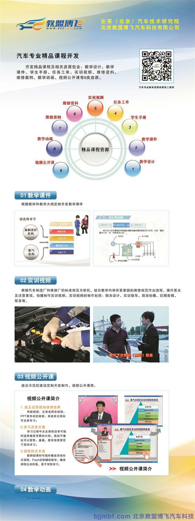 北京教盟博飛汽車科技有限公司是安萊(北京)汽車技術(shù)研究院投資,是以教學(xué)輔助信息平臺(tái)為汽車專業(yè)院校訂制開(kāi)發(fā)實(shí)戰(zhàn)教學(xué)資源庫(kù),拍攝制作實(shí)訓(xùn)精品課程以及校本教材。同時(shí),邀約國(guó)家級(jí)汽車行業(yè)專家指導(dǎo)技能大賽和專業(yè)建設(shè),提供高品質(zhì)師資培訓(xùn)等等。全方位支持院校打造國(guó)家級(jí)汽車示范專業(yè)!