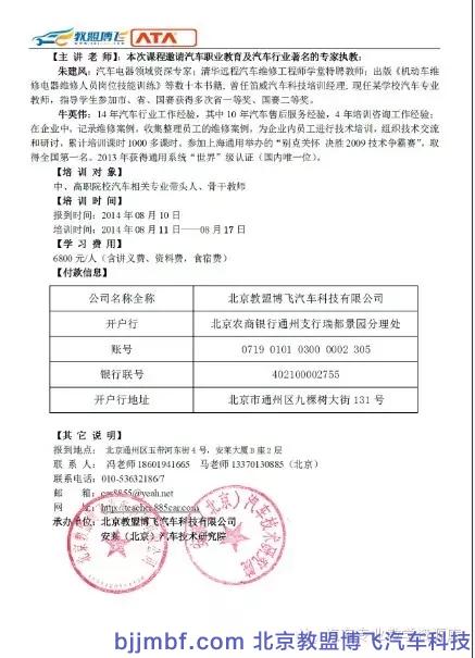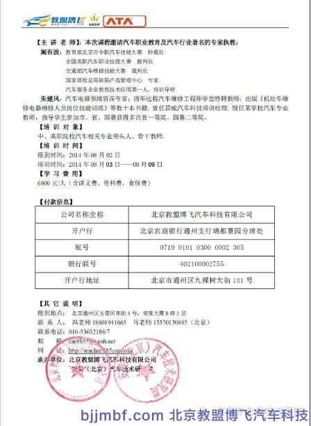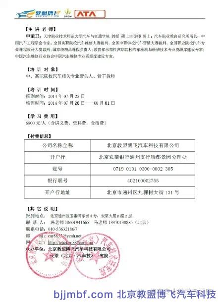 暑期將至,北京教盟博飛汽車科技有限公司、安萊(北京)汽車技術(shù)研究院公司聯(lián)合,組織“職業(yè)院校汽車專業(yè)師資培訓(xùn)班,誠(chéng)邀您的參與