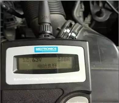 (4)將帶有表筆的啟動線搭在蓄電池樁頭上,按壓解釋;