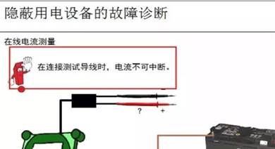 測量中發(fā)現(xiàn),不論等得再久,依然是60MA左右,加上之前此車檢測過多次,懷疑故障點判斷不準確。再次復(fù)查,同時翻閱維修手冊,維修手冊上指出,在測量隱藏用電器時盡量不要斷開蓄電池。