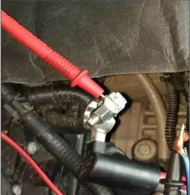 (3)萬用表另一個表筆連接蓄電池啟動線;