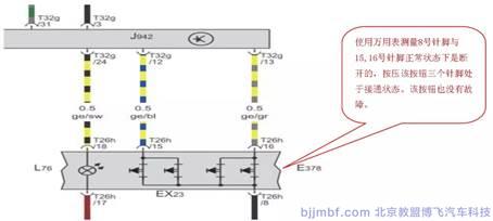 根據(jù)以上檢查,對發(fā)動機控制單元進行了在線匹配,匹配正常完成但故障現(xiàn)象依舊??紤]此車的故障現(xiàn)象,無鑰匙進入功能是正常的,鑰匙插入點火開關(guān)啟動發(fā)動機也是正常的,不應是防盜系統(tǒng)個別硬件出現(xiàn)故障造成的,重點還是檢查E378 一鍵啟動系統(tǒng)。