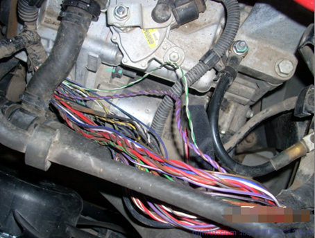 檢查發(fā)現(xiàn)這兩組線路正好捆扎在一段線束內(nèi)。拋開線束檢查,發(fā)現(xiàn)線束內(nèi)有大量積水,詢問車主得知,不久前曾清洗過發(fā)動機艙。
