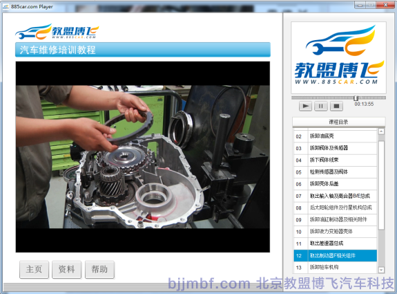《汽車自動變速器拆裝工藝》全景視頻教學(xué)系統(tǒng)結(jié)合廠家標(biāo)準(zhǔn)規(guī)范流程,標(biāo)準(zhǔn)化操作完成汽車自動變速器拆裝工藝視頻系統(tǒng);運(yùn)用平面、視頻、多維動畫技術(shù)形成一套集講授、實(shí)景演示、重點(diǎn)回顧、原廠維修手冊標(biāo)準(zhǔn)操作流程等立體視頻教學(xué)系統(tǒng);完整詳細(xì)的講解了自動變速器的拆裝工藝;彌補(bǔ)傳統(tǒng)視頻畫面單一,重點(diǎn)不突出,標(biāo)準(zhǔn)規(guī)范不明顯等缺點(diǎn);立體視頻教學(xué)系統(tǒng)同時具備一定的自動考核、教學(xué)環(huán)境識別等功能,從而提高學(xué)習(xí)和訓(xùn)練效率。